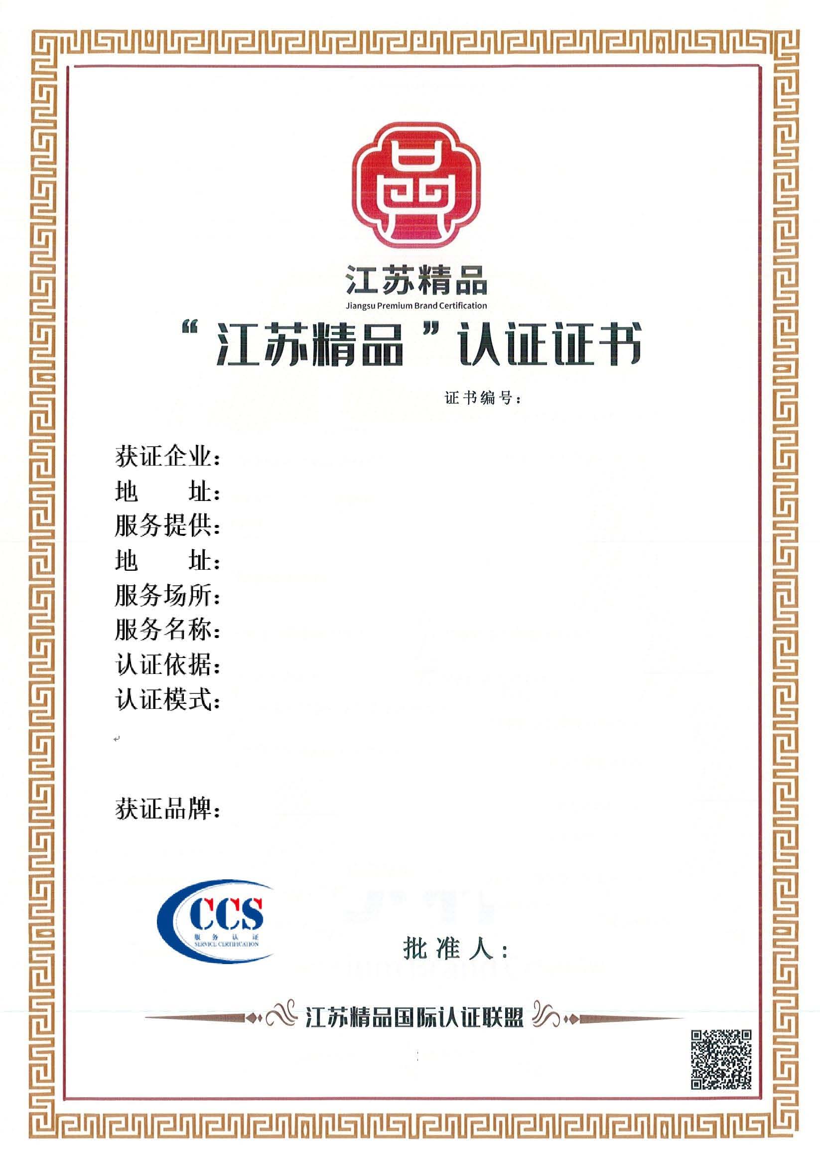 江苏精品认证证书
