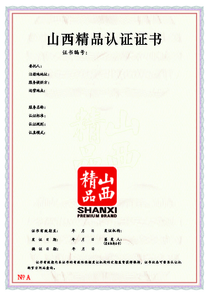 山西精品服务认证标志