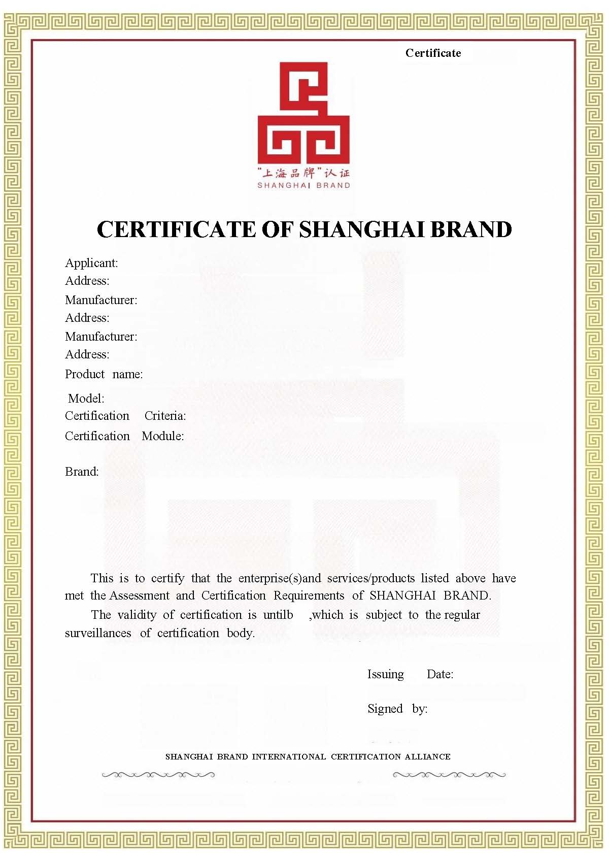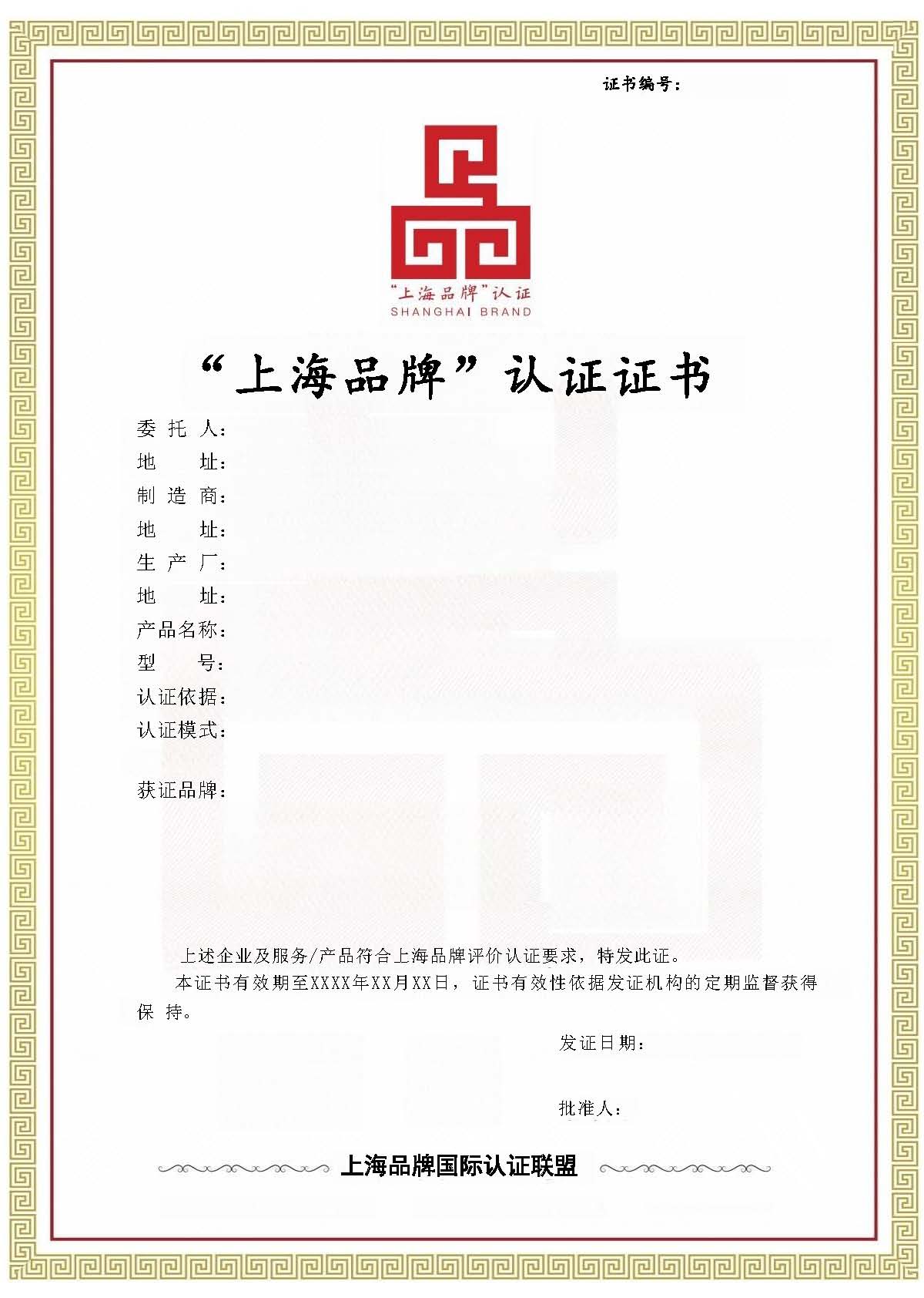 上海品牌认证证书样式