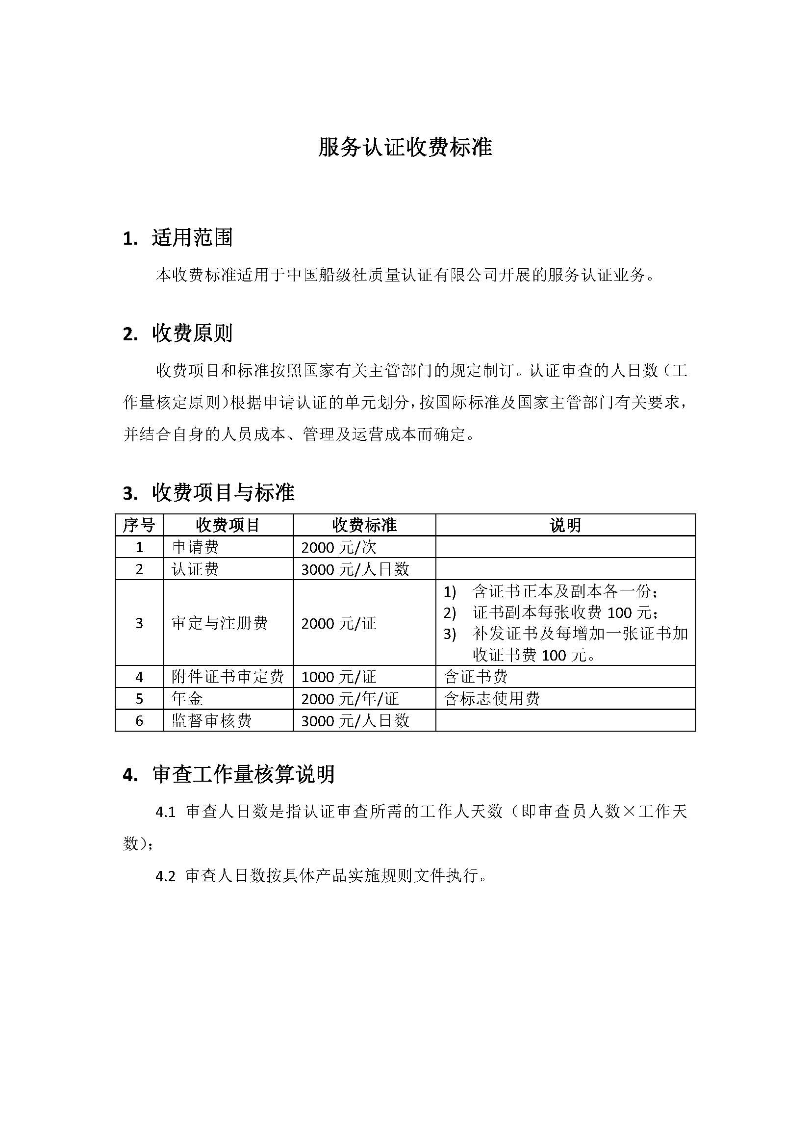 服务认证收费标准